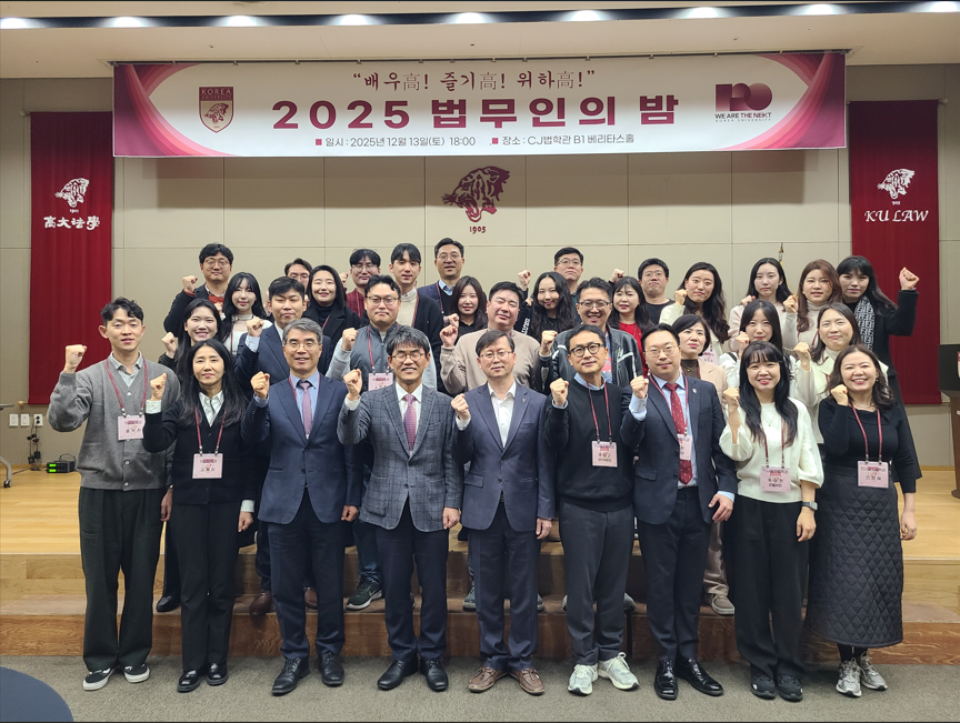 법무대학원 학생회(회장 이춘수)은 지난 2025.12.13.(토) 저녁 6시 CJ 법학관에서 2025년 법무인의 밤 행사를 가졌다. 한 학기의 마무리와 2025년 송년회를 겸하는 자리이었는데, 지난 한 해의 여러 기억을 함께 나누는 모임이었다. 저녁식사 후에는 원우들의 친목을 도모하는 유쾌한 시간을 가지었다.