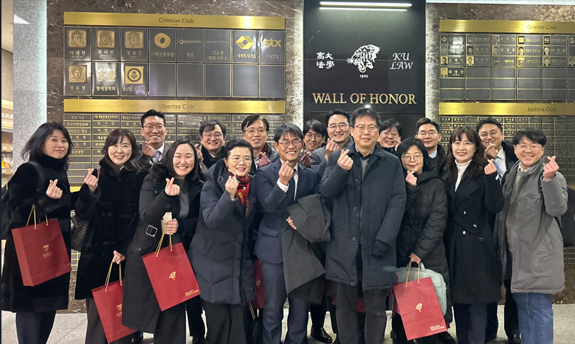 고법 95학번 교우 17분이 1월 27일 모교 법학전문대학원(로스쿨)을 방문하였습니다. 지난해 11월 입학 30주년 행사를 한 고대법대 95학번 교우들은 본교 외에 모교 로스쿨의 발전을 위하여 5천만원을 후원하였습니다. 이번 방문은 고법 95학번 교우분들에 대한 로스쿨 측의 감사의 뜻을 전하는 자리이기도 하였습니다. 참석한 교우들은 한참만에 찾은 캠퍼스에서 재학 시절의 추억을 나누는 한편 크게 변화, 발전한 학교의 현재 모습을 공유했습니다. 교우 대표인 김도형 95학번 교우회장(법무법인 바른 대표변호사)은 " 학교의 초대에 감사드리며, 앞으로도 고대법대와 교우회의 발전을 위해 노력하겠다" 고 화답했습니다. 법학전문대학원 또한 법학 교육과 연구에 보다 정진함으로써, 교우분들의 관심과 사랑에 보답해 나갈 것을 약속드립니다.