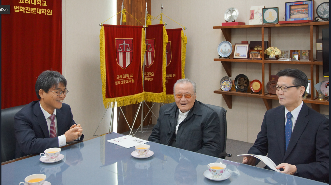 김진하 교우(고법 54, 담산문화원 이사장)께서 우리 로스쿨을 방문하셨습니다. 이번 방문은 법전원 장학금으로 1억 원을 쾌척해 주신 교우님께 감사의 마음을 전하고자 마련된 본교 기부식 직후에 이루어졌습니다.