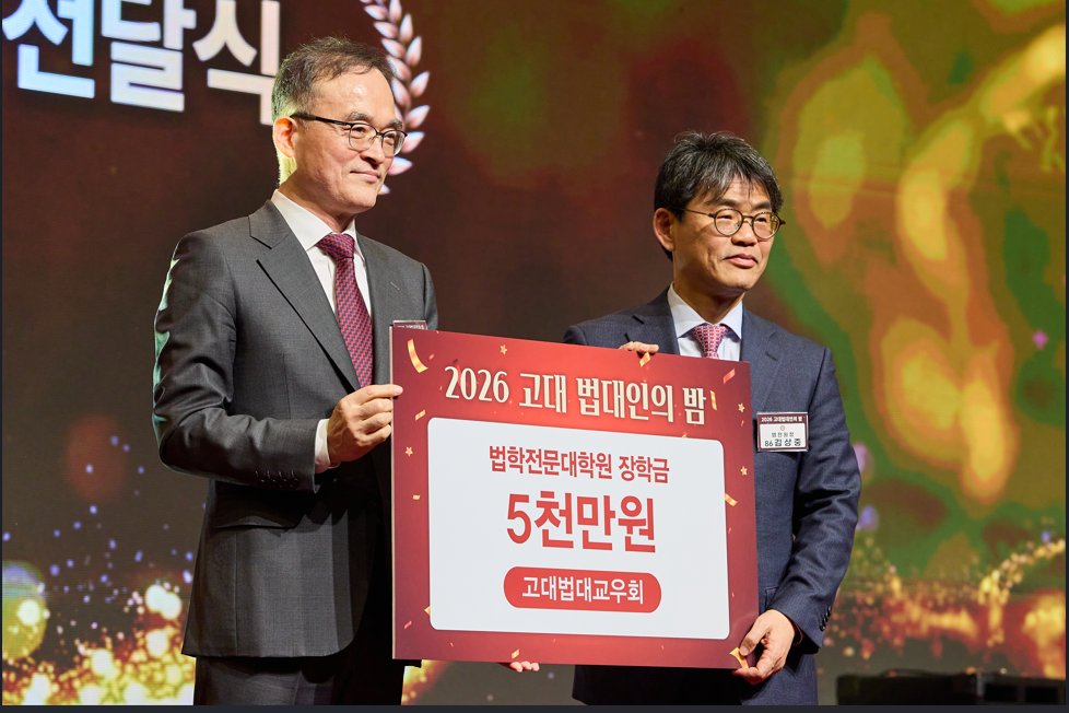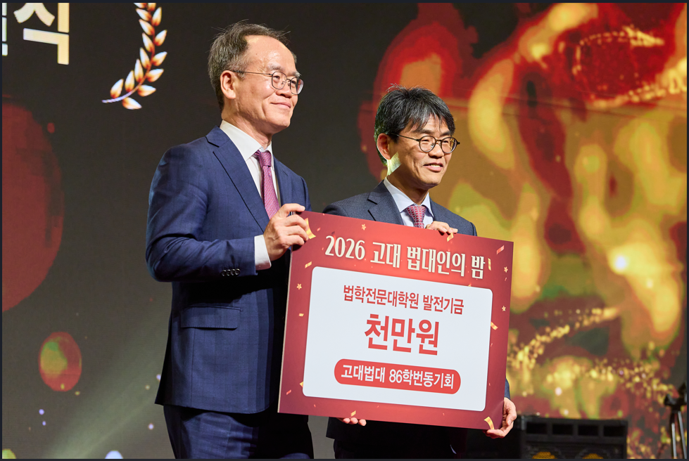 지난 2월 27일 (금) 고려대학교 법대교우회(회장 문무일)는 600여 명의 교우가 참석한 가운데, '고대법대인의 밤' 행사를 성황리에 개최하였습니다. 작년 고대법대 개교 120주년 이후 새로운 120년을 향한 첫 걸음이 되는 올해 행사는 86학번 동기교우회(회장 이주형)의 주관으로 진행되었습니다. 이날 행사에서는 박종희 명예교수님, 최교일 법무법인 해송 대표변호사님, 조희진 정부법무공단 이사장님께서 '자랑스러운 법대인상' 을 수상하였습니다. 또한 법대 교우회와 86학번 법대동기모임은 우리 로스쿨에 각각 장학금 5천만원과 발전기금 천만원을 기부하였습니다. 우리 로스쿨은 이 소중한 나눔에 보답하고자, 전문 법조인 양성과 미래법학자 배출 등을 충실히 수행해 감으로써 국내 최초이자 최고의 법대라는 위상과 역할을 잘 지켜가겠습니다.