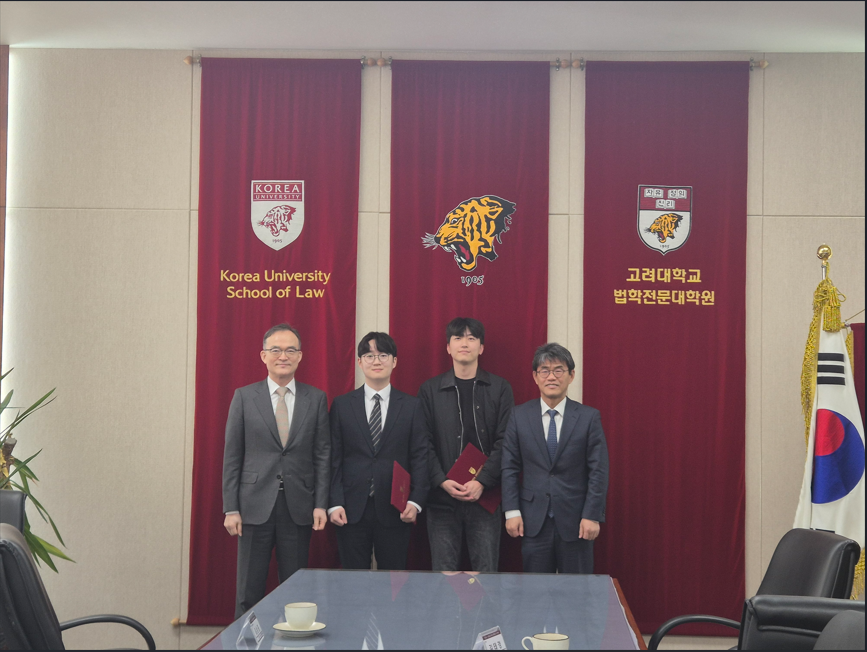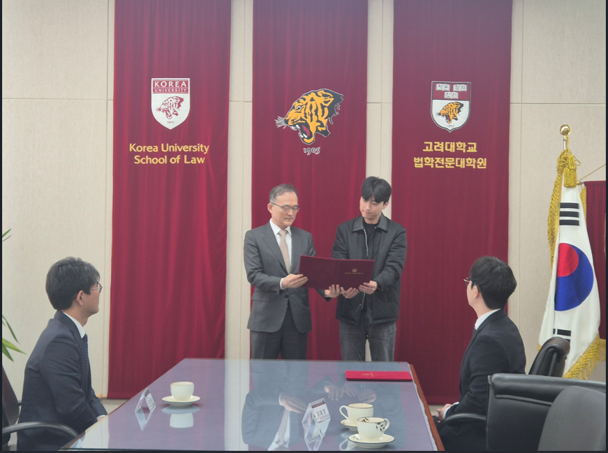 [2026학년도 1학기 법대교우회 장학증서 수여식]이 오늘 오전 11시 40분 원장실에서 진행되었습니다.