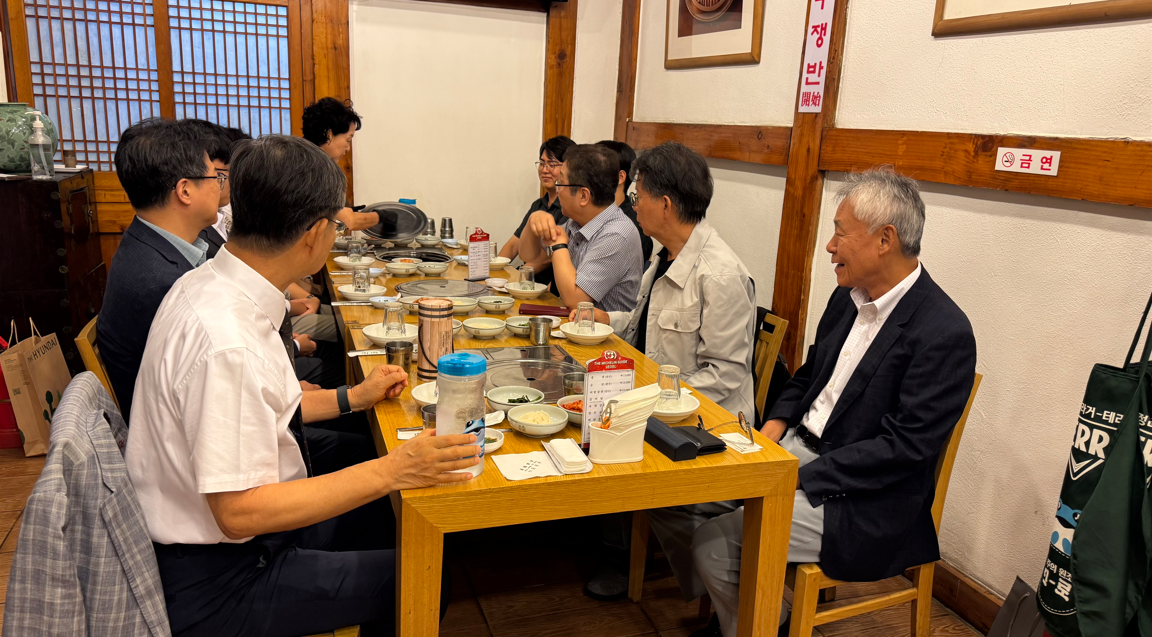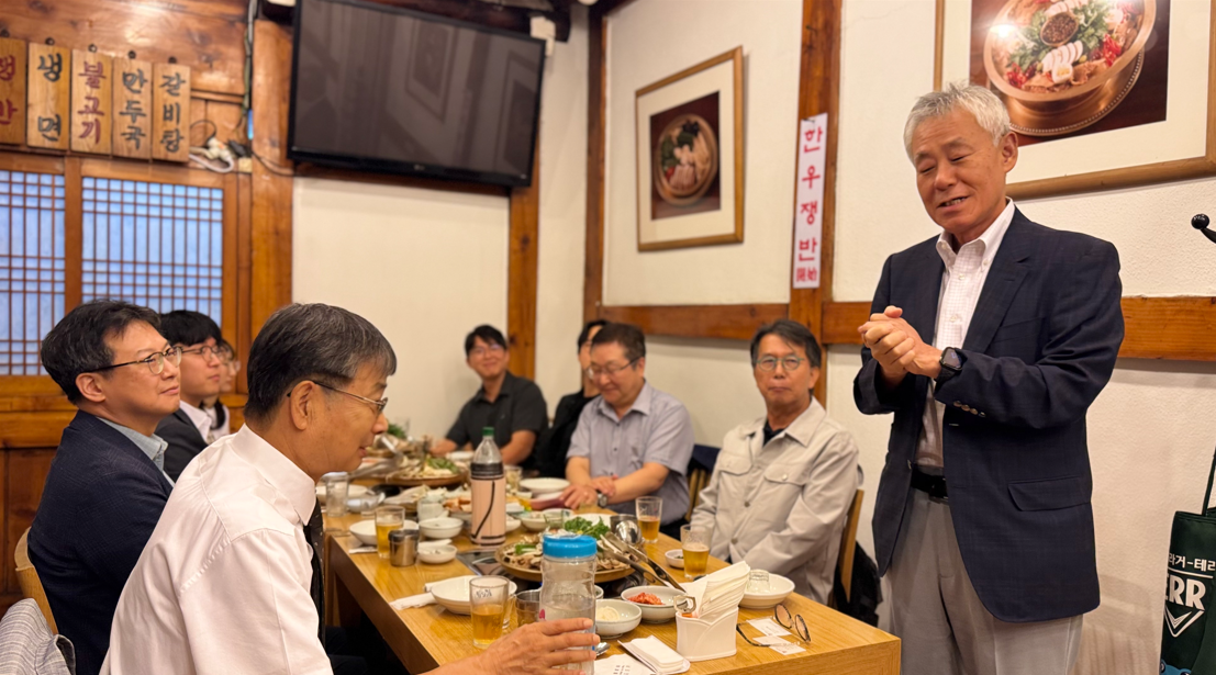 지난 2025년 9월 25일 저녁, 일본 로펌 Orbis(오사카 소재)에 인턴을 다녀온 학생들과 일본법학회 회원들이 Orbis 배훈 변호사, 배유 변호사님과 함께 즐거운 식사모임을 하였다. 자리에는 신영호명예교수, 명순구교수, 우병창교수(숙대법대) 그리고 최우진 교무부원장, 홍영기 대외기획부원장이 함께 참여하였다. 40년 가까운 인연으로부터 고대법대에 큰 관심과 애정을 갖고 있는 배유 변호사는 이 자리에서 ‘앞으로도 꾸준히 학생들을 인턴으로 초청하여 도와주는 것은 물론, 인적 네트워크를 만들어 양국 법문화 교류에 기여하고자 한다’는 뜻을 밝혔다.