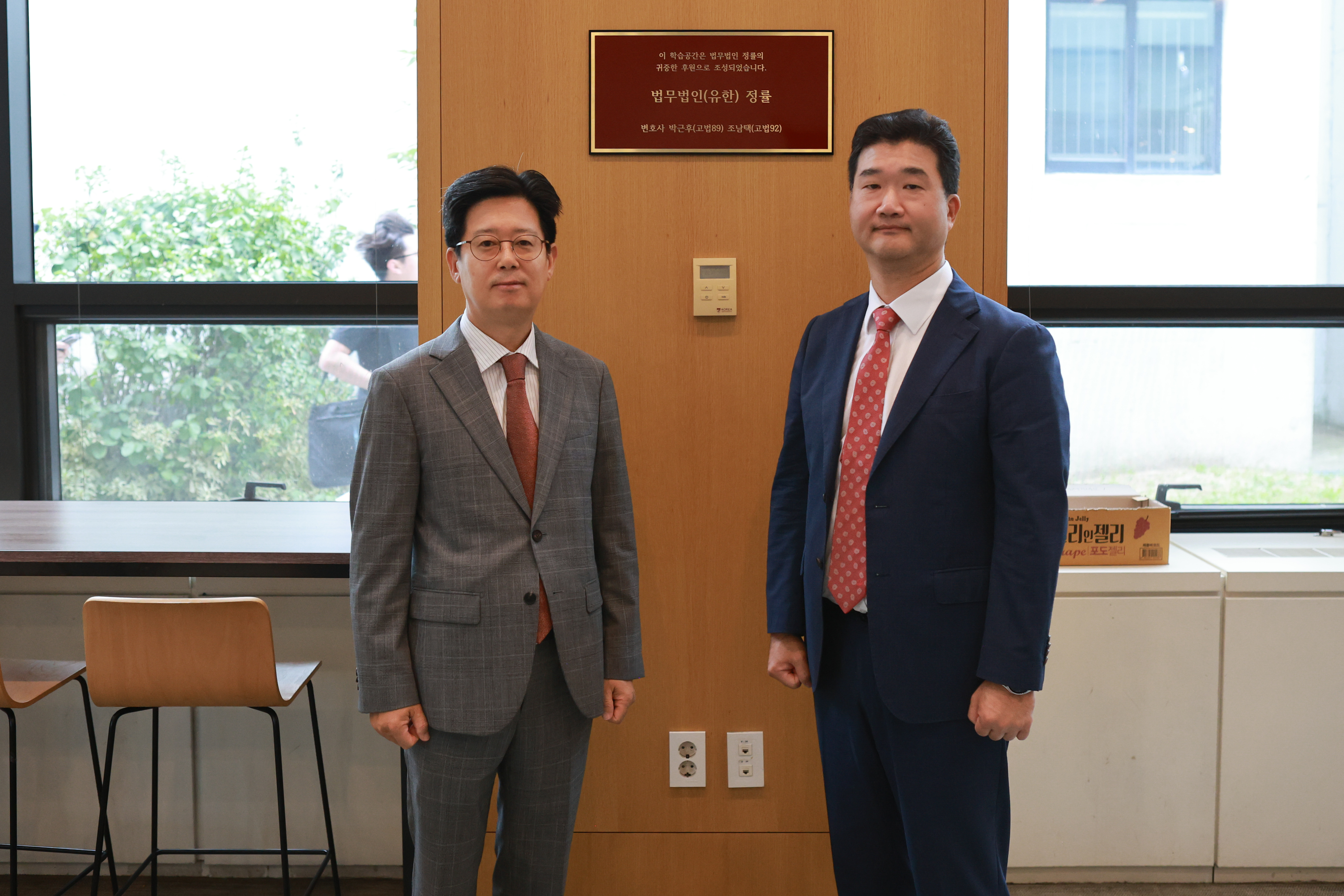 두분 변호사님의 뜻깊은 나눔에 진심으로 감사드리며, 두분의 뜻이 학생들의 학업환경 개선과 법학교육 발전에 큰 힘이 될 것입니다.