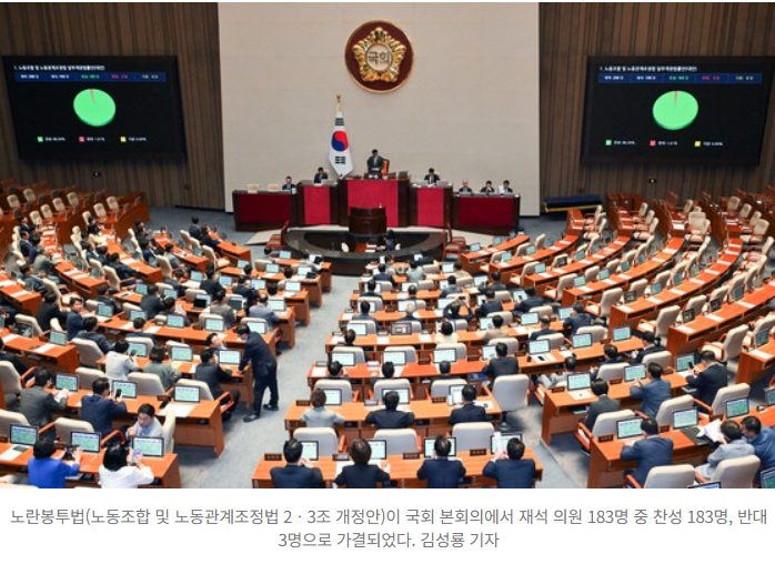 최근 입법된 상법과의 충돌 가능성도 제기됐다. 강영기 고려대 법학연구원 연구교수는 “노란봉투법은 회사가 입은 손실에 대해 이사들이 노조원에게 책임을 묻지 못하도록 규정하고 있다”며 “반면 개정된 상법은 노조의 행위로 기업에 손해가 발생할 경우 이사에게 손해배상을 청구할 수 있도록 하고 있어, 두 법이 정면으로 충돌하는 상황이 벌어질 수 있다”고 지적했다.