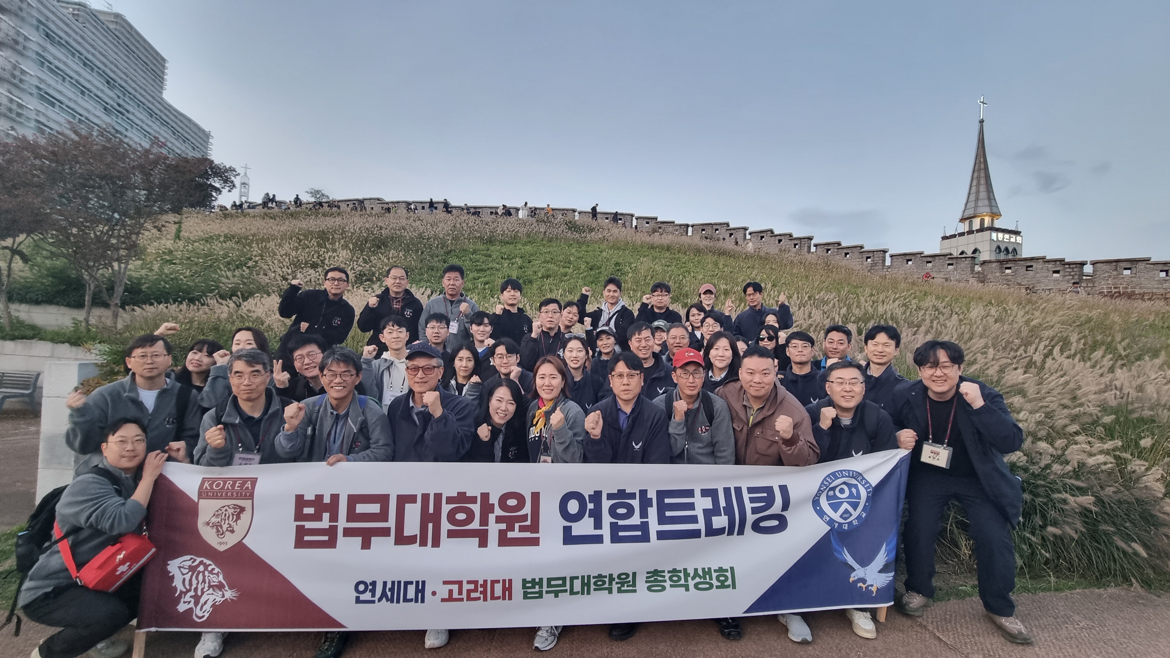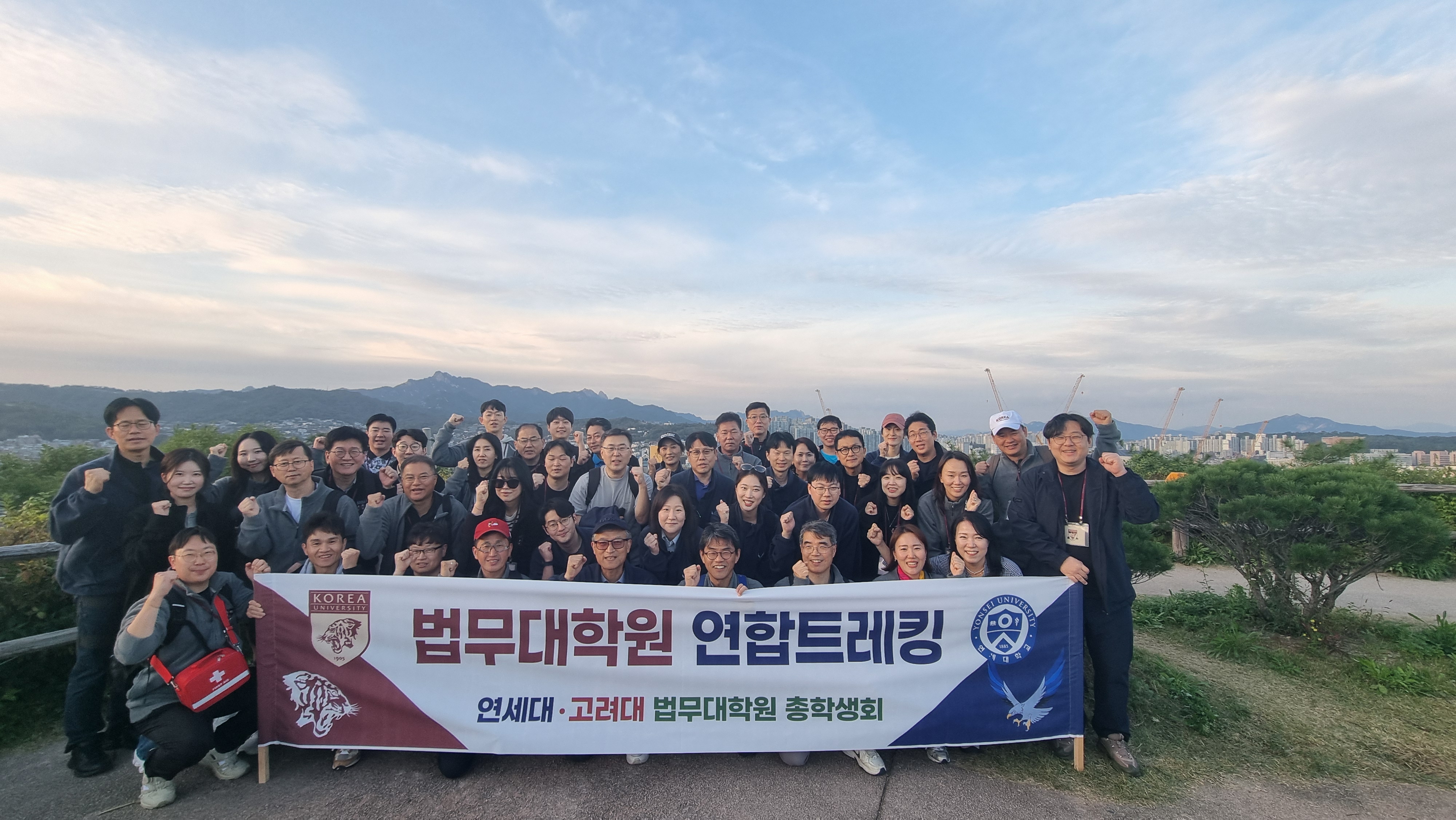 지난 10월 25일 고려대 법무대학원 총학생회(회장 이춘수)는 연세대 법무대학원 총학생회와 함께 양 대학원 연합트레킹 행사를 가졌다. 앙 대학원 재학생, 졸업생 100여 명이 대학로 마로니에 공원에 모여서 낙산공원의 서울 성곽 일대를 트래킹하였다. 이 자리에는 양 법무대학원 교수님들과 졸업생도 함께 하여 10월 가을날의 정취와 석양의 추억을 공유하는 자리가 되었다.
