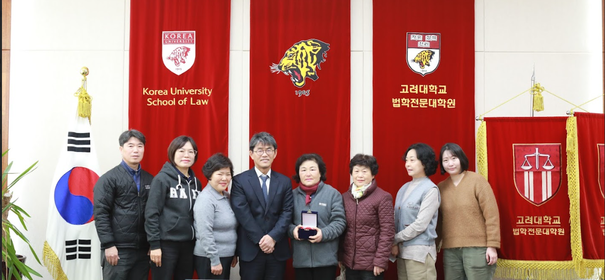 법학관 신관에서 15년 간 미화 업무를 성실히 수행하고 정년을 앞둔 박현희 선생님의 노고에 감사패 수여를 진행하였다. 박현희 선생님께서는 2011년부터 15년간 법학관 신관에서 근무하며 따스한 마음으로 학생들을 대해주시며 최고의 학업 환경 조성에 크게 기여하였다. 아울러 박현희 선생님의 정년 이후의 새로운 시작에도 건강과 행복이 늘 함께하길 기원한다.
